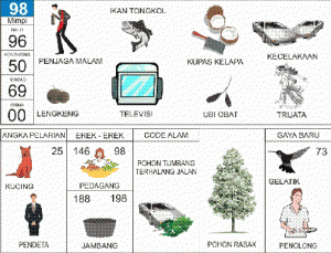 - Angka Pelarian (AP) 98 adalah 25 artinya Kucing dan Pendeta